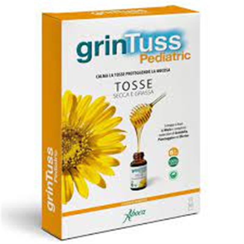 GRINTUSS PEDIATRIC SCIROPPO,indicato per il trattamento della tosse, sia secca che grassa, di bambini a partire dai 6 anni di età, agisce calmando l'irritazione, proteggendo la mucosa.